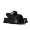Sandalia de Fibras Animal Friendly. Con velcro en capellada y aplique de logo en lateral. Plataforma cuadrada de 3,5 cm de alto. Con suelín de goma con vira.