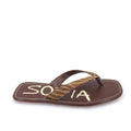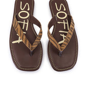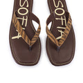 Ojota de gamuzón cebra marrón, con forrerias animal Friendly. Estampa SOFIA exclusivo de nuestra capsula CELEB. Costuras combinadas en capellada y plantilla a contra tono. Suelín de goma.