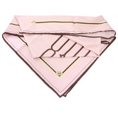 Pañuelo Miak rosa confeccionado en seda suave al tacto con estampa personalizada de la marca. Su diseño cuadrado de 70 x 70 cm permite múltiples usos, ya sea como accesorio de cuello, en el cabello o sobre una cartera. Un complemento distintivo que suma color y estilo a cualquier look.