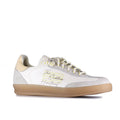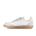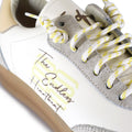 Sneaker Dles amarilla acordonada confeccionada en cuero y gamuzón. Su diseño combina estampa en la caña y la lengüeta en dos tonos que aportan contraste visual. Incluye forrería textil que asegura comodidad y fondo de goma inyectado a color. Un modelo que destaca en cualquier look urbano.