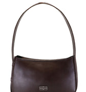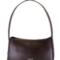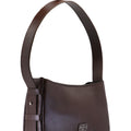 Mini bag Tar chocolate con correa irregular. En el frente, lleva el logo de la marca centrado en la tapa. Un accesorio versátil, ideal para acompañar looks tanto de día como de noche.