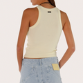 Musculosa Palp amarillo confeccionada en morley elastizado con collareta ancha en cuello y sisas. Presenta sisa cavada y cuello cerrado, en un textil suave y liviano que se adapta cómodamente a la silueta. Su largo modular llega a la cadera. Una opción fresca y adaptable a la temporada verano.