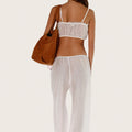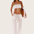 Top Navi off white de gasa con alforzas en el frente. Con elástico interno en escote y bajo busto y jaretas ajustables. Tela translúcida y liviana de tacto suave. Largo modular por debajo del busto. Ideal para un look fresco de verano.