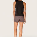 Short Ardi de gabardina sastrero, con cordón a tono en cintura regulable y terminales níquel personalizadas. Tiene bolsillos con cierre en el frente y su largo modular es por debajo de la segunda cadera.