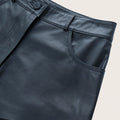 Short Viku negro confeccionado en cuero con avíos personalizados a tono. Su diseño combina suavidad al tacto con un largo modular por debajo de la cola, logrando un calce cómodo y distintivo. Una prenda con carácter que complementa tu estilo.