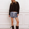 Short tipo boxer Xemu color azul confeccionado en poplín cuadrillé, combinado con cintura rayada con elástico que aporta contraste. Su diseño presenta fit regular y largo por debajo de la cola para un calce cómodo. Incluye bordado de logo de marca a tono como detalle sutil. Un modelo relajado que suma un guiño trendy al look.