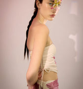 Top Atelier por Clara Pinto. Strapples con jareta para fruncir en lateral. Tela con estampa única en tonos rosados. Largo modular por cintura. Tela doble para evitar que sea translucido. Tela suave al tacto y ajusta a la silueta.