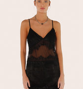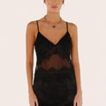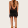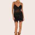 Vestido Veru negro confeccionado en seda combinada con mesh translúcido, lo que aporta ligereza y un estilo distintivo. Presenta escote en V y espalda baja cavada, con breteles regulables para mayor ajuste. Su acceso es directo y sus textiles son livianos, lo que lo hace cómodo de llevar. Una prenda versátil para destacar en la temporada de verano.