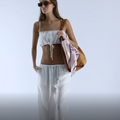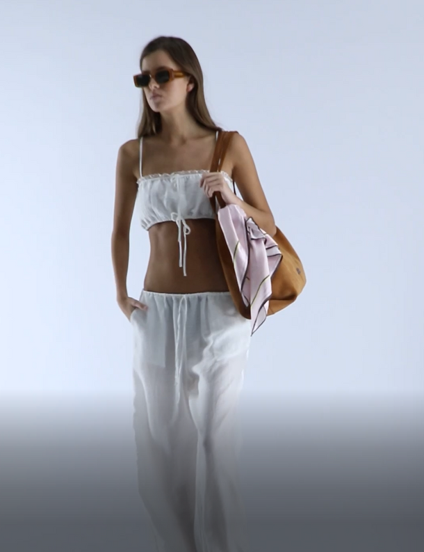 Pantalón Loni off white confeccionado en gasa traslúcida, suave y liviana al tacto. Su diseño incorpora cintura elástica con jaretas de ajuste y bolsillos laterales que aportan practicidad. El largo modular llega hasta los talones, generando una caída fluida y elegante. Una pieza fresca y versátil.