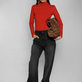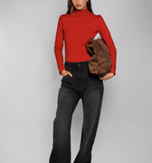 Polera Tyra roja manga larga elastizada, se adapta a la silueta del cuerpo. Su tela es liviana y suave al tacto y su largo modular es por arriba de la cadera.