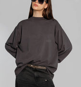 Remera oversized Jax gris de manga larga con frunce. Confeccionada en tela de peso medio con caída fluida. Su largo modular llega por debajo de la cadera. Diseño con logo bordado en el frente.