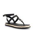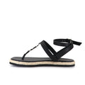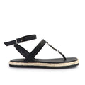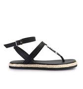 Sandalia Yavi negro de fibras animal frienly. Ojota con pasador en tira de empeine y logo SS. Pulsera con hebilla. Plantilla forrada. Base de eva forrada en yute. Altura de 1,5 cm.