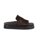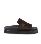 Sandalia Veka chocolate de fibras animal friendly con logo bordado a 2 tonos en capellada. Plantilla birk con logo estampado. Suelin de goma eva.