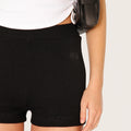 Mini short tejido Apris negro con cintura elástica y bordado de marca a tono en la delantera. Su diseño está confeccionado en un tejido suave y liviano que aporta confort, con largo modular por debajo de la cola. Una prenda canchera ideal para acompañar tus días de verano.