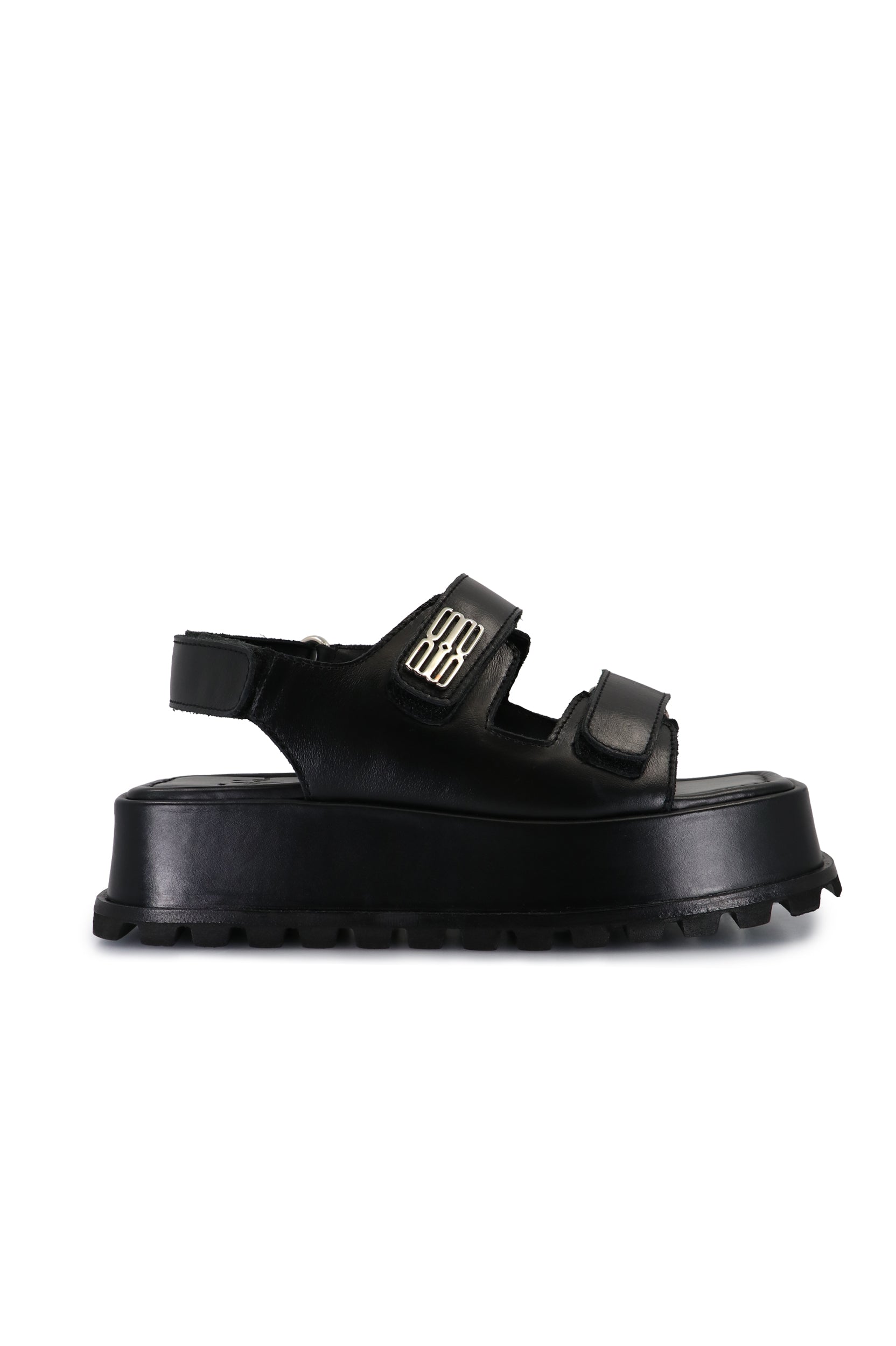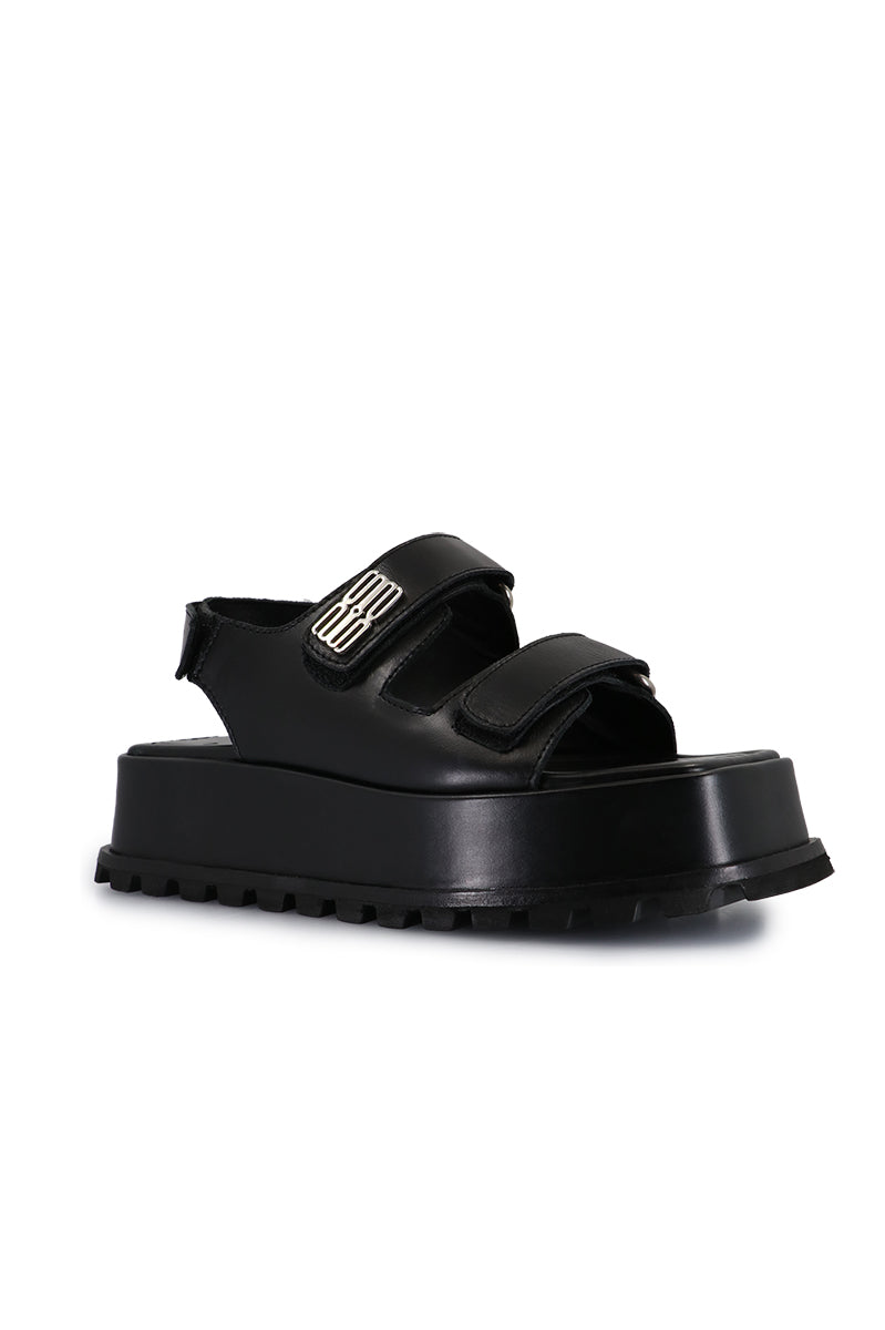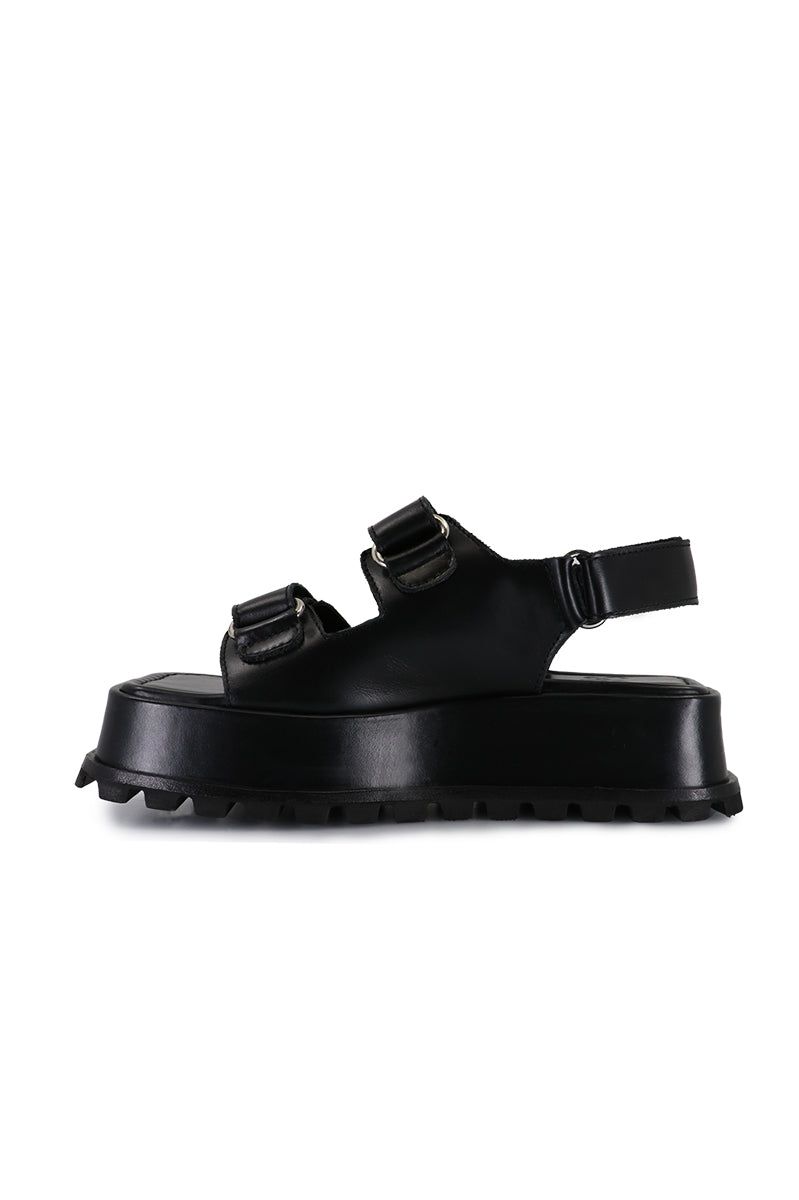 Sandalia de Fibras Animal Friendly. Con velcro en capellada y aplique de logo en lateral. Plataforma cuadrada de 3,5 cm de alto. Con suelín de goma con vira.