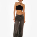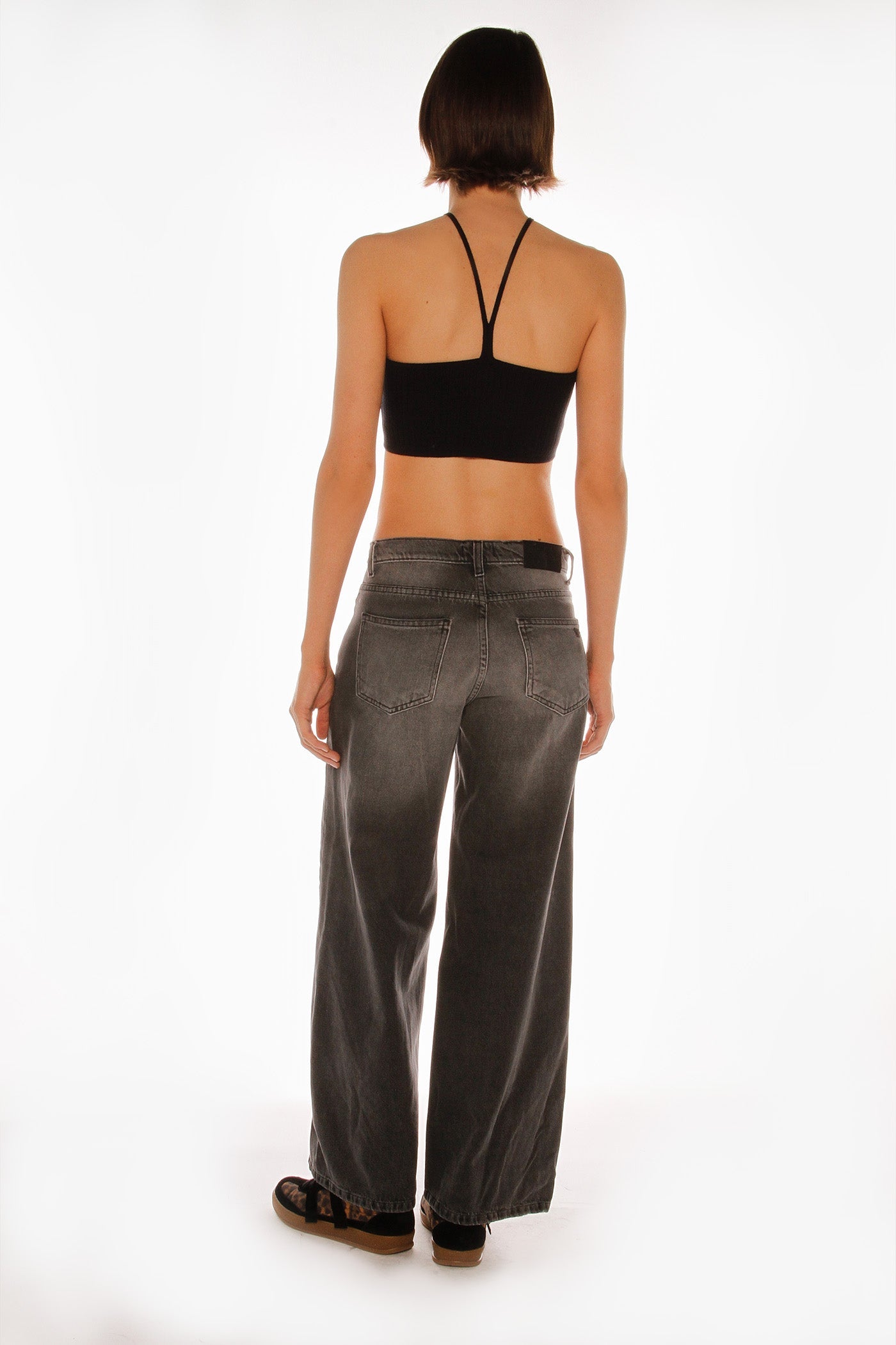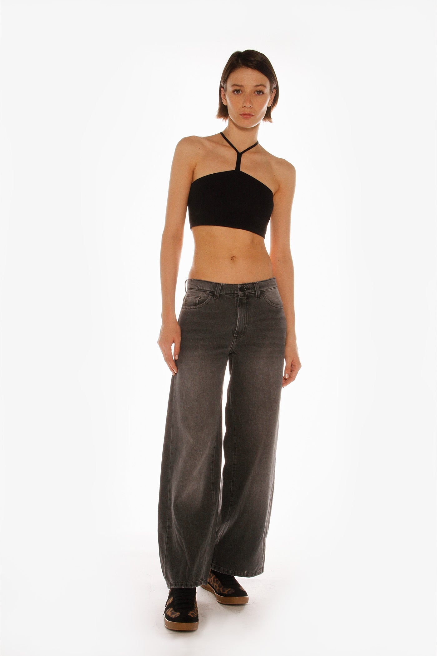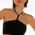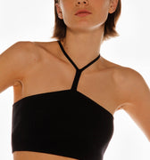 Top tejido con escote con tira central. Su hilado es fino y levemente elastizado para que se amolde mejor a la silueta. El largo modular es hasta la cintura.