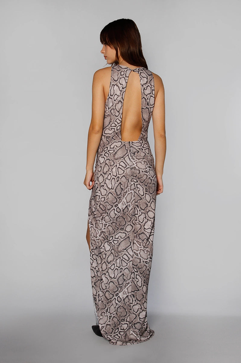 Vestido largo Yui multicolor full print, confeccionado en una tela suave al tacto con caída fluida. Está diseñado con sisa cavada y cuello a la base e incluye un botón en la parte trasera para facilitar su colocación. Su espalda descubierta se complementa con frunces laterales, mientras que el tajo delantero hasta el ruedo realza la silueta. Es un ítem versátil y elegante, ideal para lucir tanto de día como de noche.