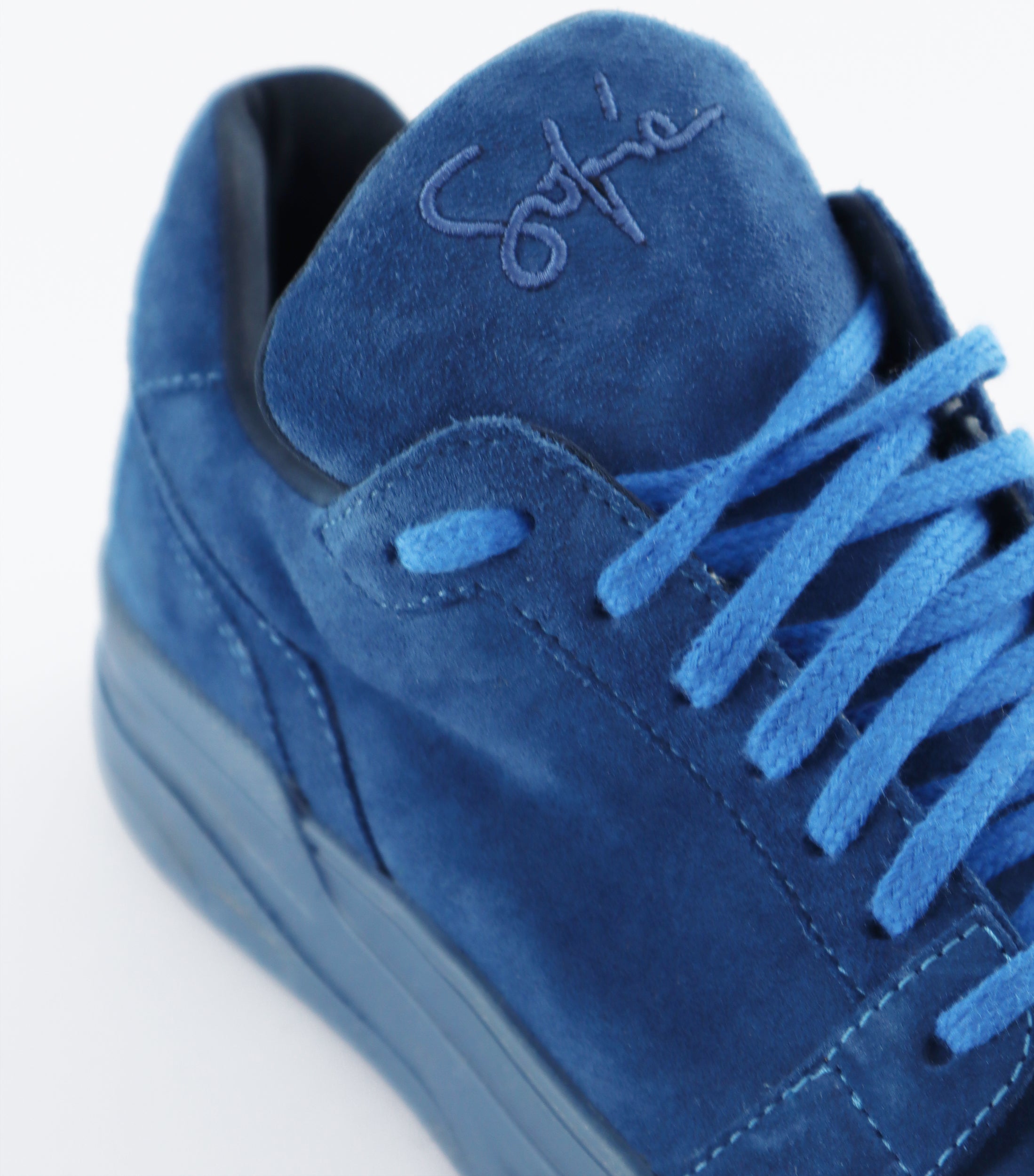 Zapatilla realizada totalmente en gamuzón. Base de goma en combinación con capellada. Detalle de bordado "Sofia" en lengua.