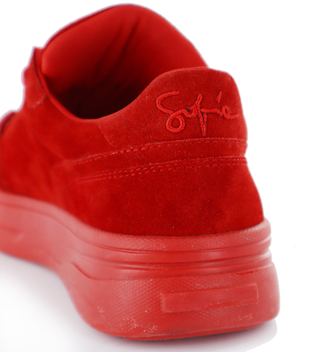 Zapatilla urbana con recortes, toda en gamuzón en combinación con la base. Detalle de bordado "Sofia" en lengua. Base de goma inyectada a tono de la gamuza de la capellada.