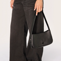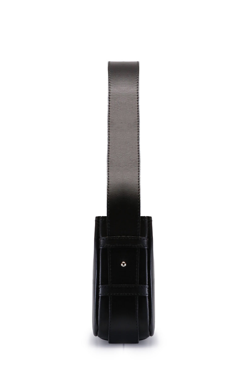 Mini bag Tar negro con correa irregular. En el frente, lleva el logo de la marca centrado en la tapa. Un accesorio versátil, ideal para acompañar looks tanto de día como de noche.