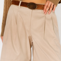 Bermuda sastrera con pinzas Drip visón. Cintura sastrera con ganchitos internos para colocación. Largo modular por mitad de rodillas. Tela de peso medio, levemente rígida para dar estructura. Logo bordado SS en espalda