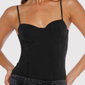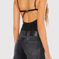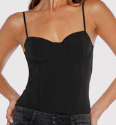 Body Vira negro confeccionado en lycra suave y liviana que se adapta a la silueta del cuerpo. Su diseño presenta tazas en el busto y breteles regulables para un ajuste cómodo y funcional. El acceso es a través de broches en el tiro, lo que facilita su uso. Un básico que se adapta a cualquier look.
