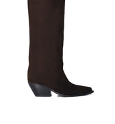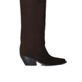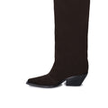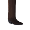 Bota Genux marrón de caña alta de gamuzón. Fondo texano artesanal con vira, altura de taco 5 cm. Altura de caña 40 cm. La circunferencia de caña en el talle 36 es de 36 cm (la medida varia según talle). Su diseño versátil aporta modernidad y confort a cualquier outfit.