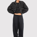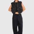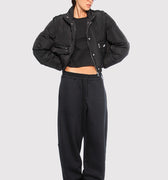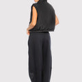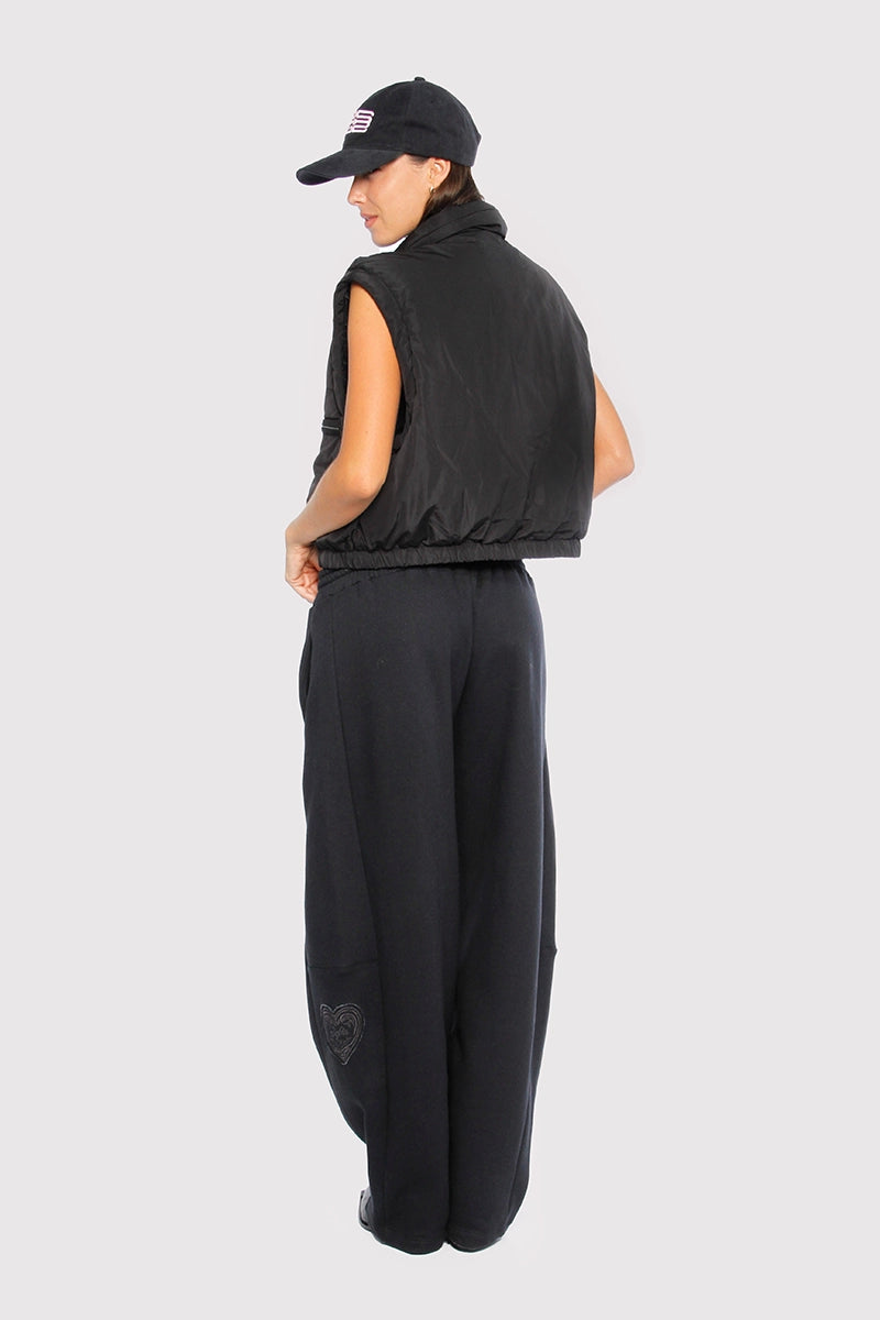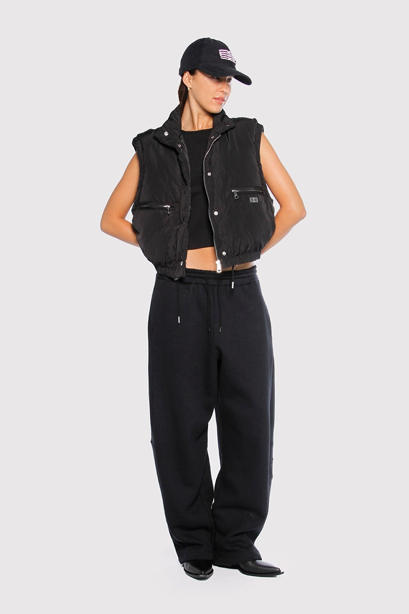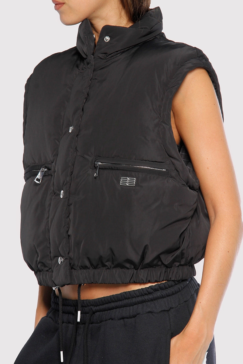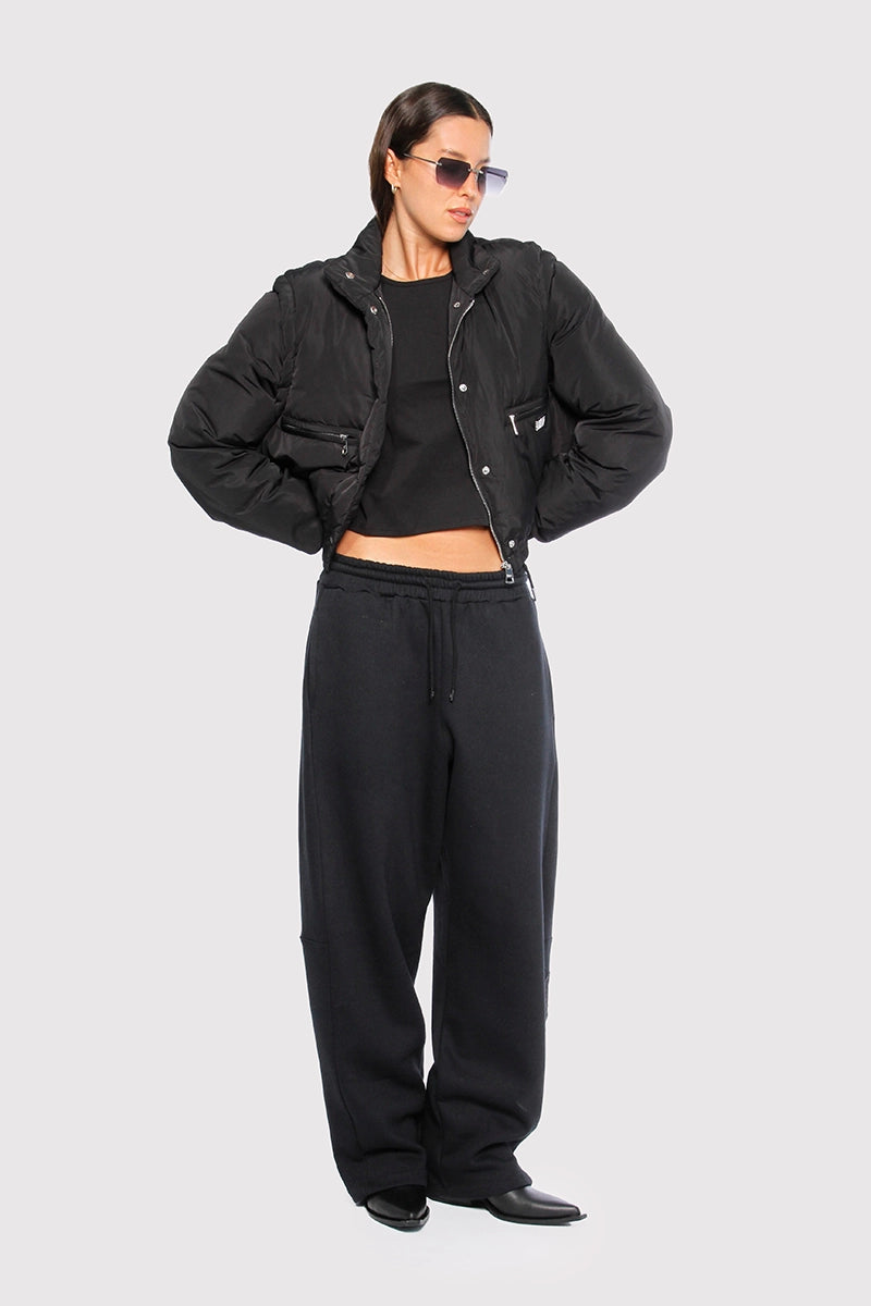 Campera Prud negra inflable con mangas desmontables. Con dos bolsillos delanteros con cierre, interior estampado con el monograma de la marca y una distintiva chapita metálica con el logo en la parte delantera. Su largo modular, que se sitúa por encima de la cadera, la convierte en la elección perfecta para quienes buscan un look moderno y cómodo en cualquier ocasión.