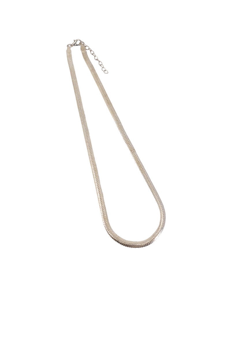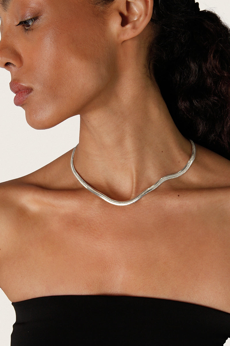 Collar Serpiente de cobre con baño y pulido en Plata 925. Medida 42 cm + extensión de 3,5 cm. Grosor 4 mm