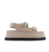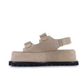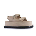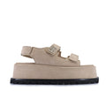 Sandalia de Fibras Animal Friendly. Con velcro en capellada y aplique de logo en lateral. Plataforma cuadrada de 3,5 cm de alto. Con suelín de goma con vira.