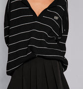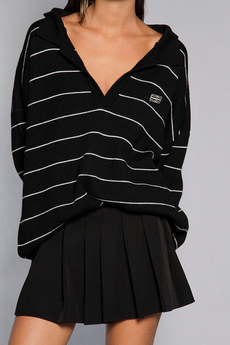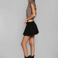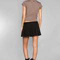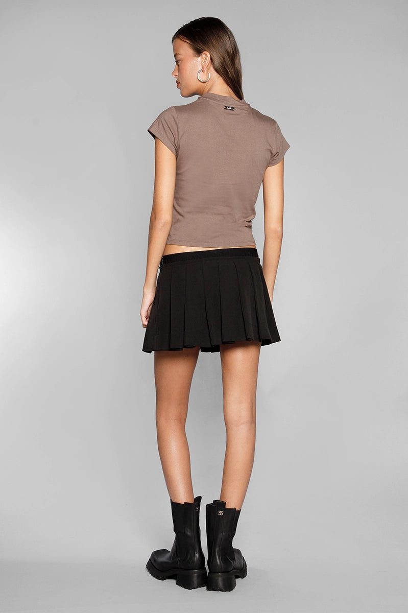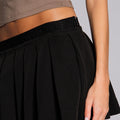 Pollera mini tableada Blas negra, con cintura con elástico personalizado Sofia. Su diseño moderno resalta la silueta con un toque sofisticado.