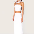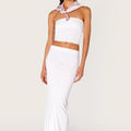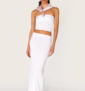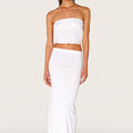 Pollera tubo Lota off white confeccionada en lycra elastizada, de silueta larga con tajo en la espalda. Su diseño incorpora cintura con elástico para un acceso directo y cómodo. El textil es liviano y se adapta al cuerpo, con largo modular hasta los tobillos. Una opción elegante que eleva cualquier look.