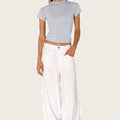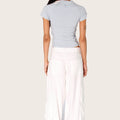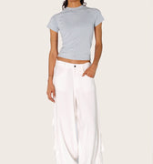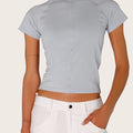 Remera Pow celeste confeccionada en jersey elastizado de manga corta. Presenta mangas raglán y un recorte central en delantero y espalda que aporta definición al diseño. Incluye grifa tejida de marca en el lateral como detalle distintivo. Su tela es liviana y se ajusta a la silueta del cuerpo, con largo modular por debajo de la cintura. Una prenda cómoda y moderna para sumar a tus looks.
