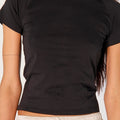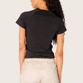 Remera Pow negra confeccionada en jersey elastizado de manga corta. Presenta mangas raglán y un recorte central en delantero y espalda que aporta definición al diseño. Incluye grifa tejida de marca en el lateral como detalle distintivo. Su tela es liviana y se ajusta a la silueta del cuerpo, con largo modular por debajo de la cintura. Una prenda cómoda y moderna para sumar a tus looks.