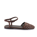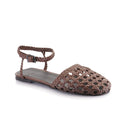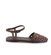 Sandalia Rilo chocolate de fibras animal friendly con capellada y tira de pulsera trenzada. Suelin de goma chilena.