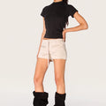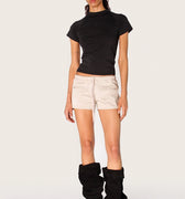 Short Ardi de gabardina sastrero, con cordón a tono en cintura regulable y terminales níquel personalizadas. Tiene bolsillos con cierre en el frente y su largo modular es por debajo de la segunda cadera.