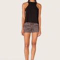 Short Ardi de gabardina sastrero, con cordón a tono en cintura regulable y terminales níquel personalizadas. Tiene bolsillos con cierre en el frente y su largo modular es por debajo de la segunda cadera.