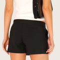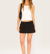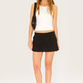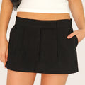 Short pollera Lirr negro confeccionado en tela sastrera liviana. Su diseño presenta cintura martillo exagerada con cartera que incorpora cierre y gancho oculto para un acceso prolijo. Incluye tablas en la delantera que aportan volumen y movimiento. Su largo modular queda por debajo de la cola, creando un look moderno y distintivo. Un ítem clave para sumar a tu colección.