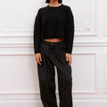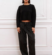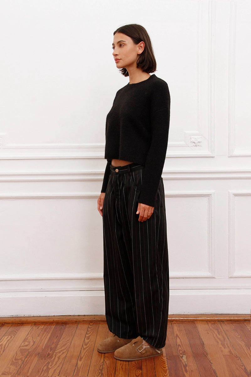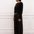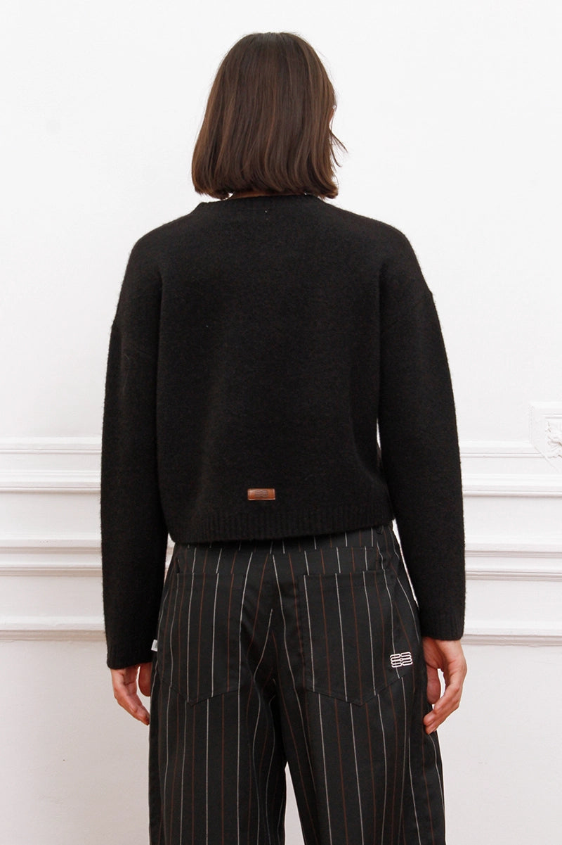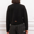 Sweater Bonn negro de hilado mezcla liso. Fit regular y largo por cadera. Logo de marca bordado en espalda a tono.