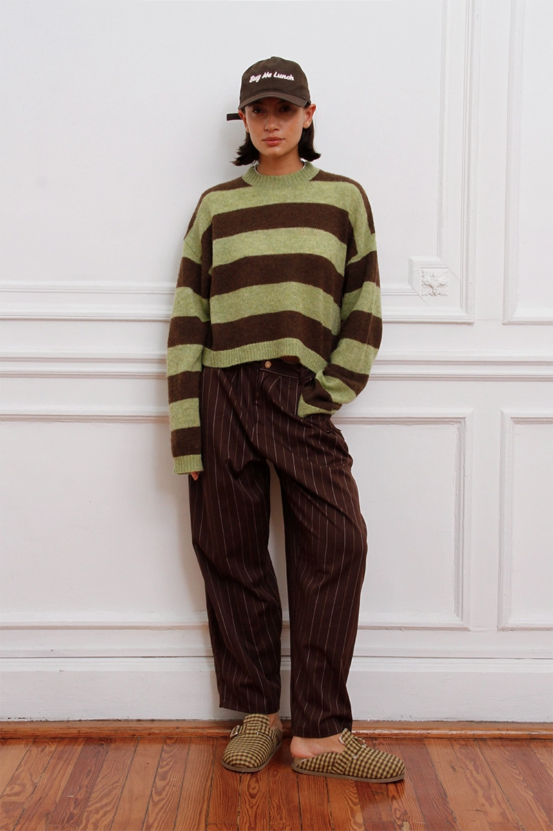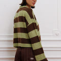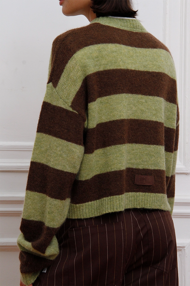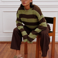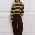 Sweater Laya marrón de hilado mezcla rayado. Fit regular y largo por cadera. Etiqueta tejida con logo marcario.