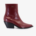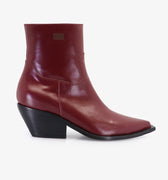 Bota texana Zior color bordó confeccionada en cuero. Su diseño presenta caña chupada con logo grabado a fuego en la parte exterior y cierre interior para un calce práctico. Incluye fondo texano que refuerza su estilo clásico. Perfecta para usar con jeans o vestidos y darle personalidad a cualquier outfit.