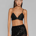 Corpiño Golu negro rígido con avío de la marca en el centro delantero. Sus breteles y contorno son regulables para un ajuste cómodo.