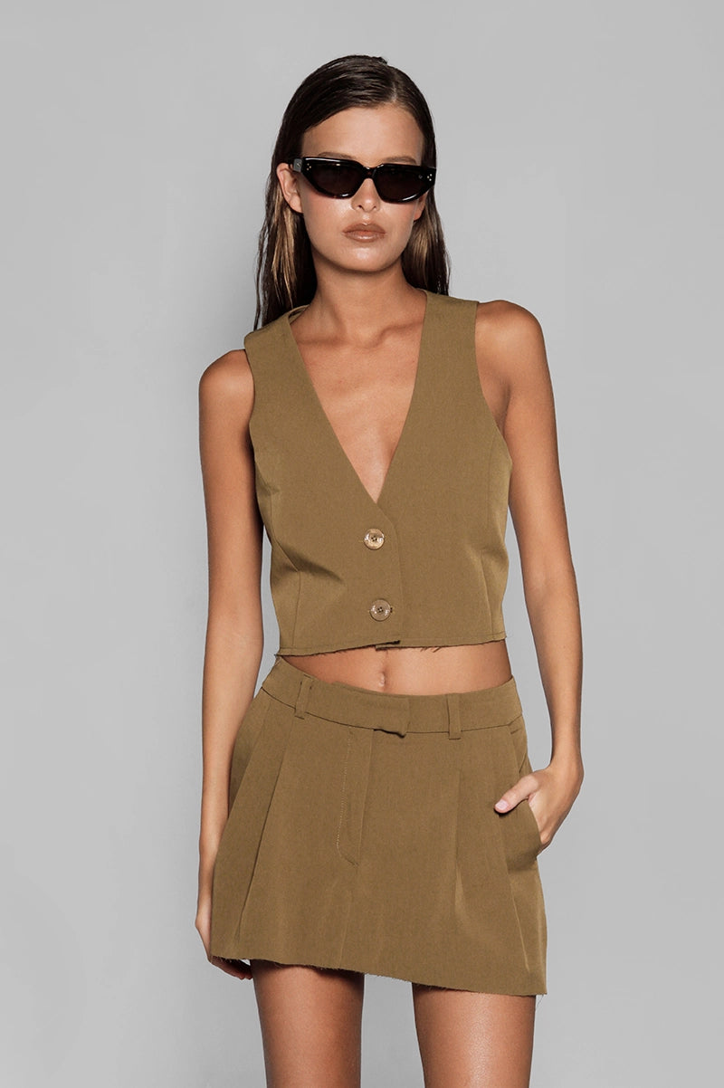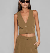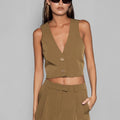 Chaleco sastrero corto Ters verde con cruce de botones a tono en delantera. Tiene ajuste en la espalda para un calce personalizado y ruedo al corte. Su largo modular llega hasta la cintura.