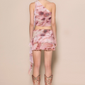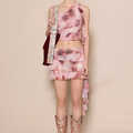 Top Vols Atelier por Clara Pinto con mordería con hombro irregular y volados caracol que cuelgan desde el mismo. Tela estampada full print en tonos rosados y amarillos. Largo modular por debajo de cintura. Tela doble en delantera para evitar que sea translucido. Tela suave al tacto y ajusta a la silueta.