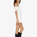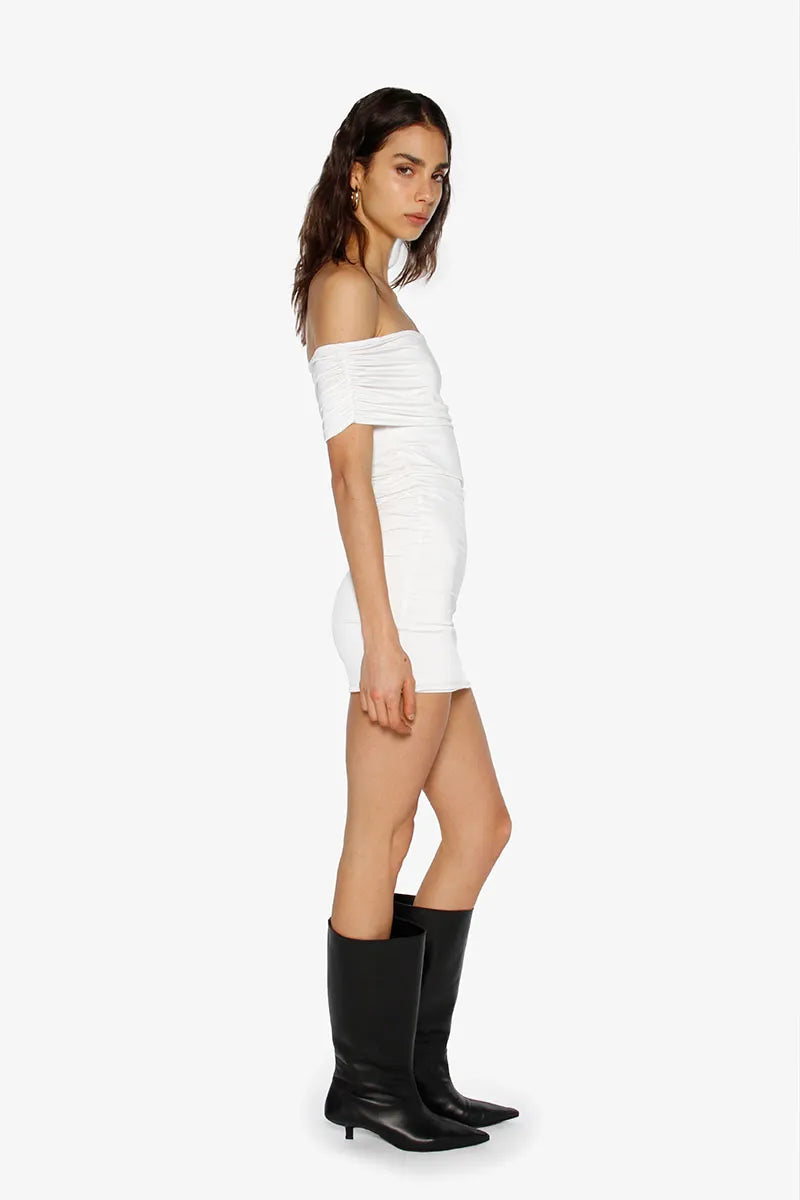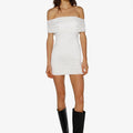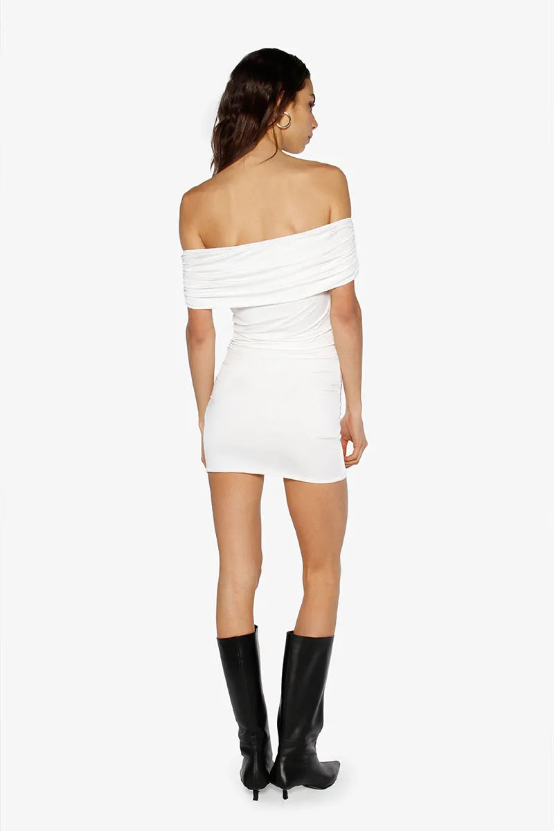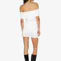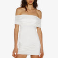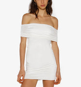 Vestido de lycra liviana corto sin hombros con ajuste de elástico para mayor comodidad. La tela se adapta a la silueta del cuerpo. Su largo modular es hasta debajo de la segunda cadera.
